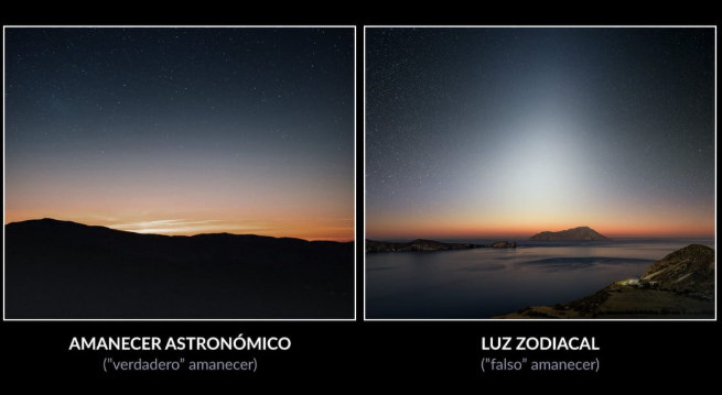 En primavera, puedes buscarla en el cielo occidental unos 90 minutos después de la puesta del Sol: es el «falso anochecer». En otoño, el mejor momento llega antes del amanecer, mirando hacia el este, en lo que se conoce como «falso amanecer». En el hemisferio norte, la luz zodiacal brilla desde finales de febrero hasta mayo en primavera, y desde finales de agosto hasta noviembre en otoño, alcanzando su máximo esplendor cerca de los equinoccios de marzo y septiembre.